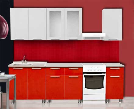 Ручки: пластмассовые. Для кухонных гарнитуров из однотонного пластика: ручки рэлинги пластмассовые (цвет Хром).