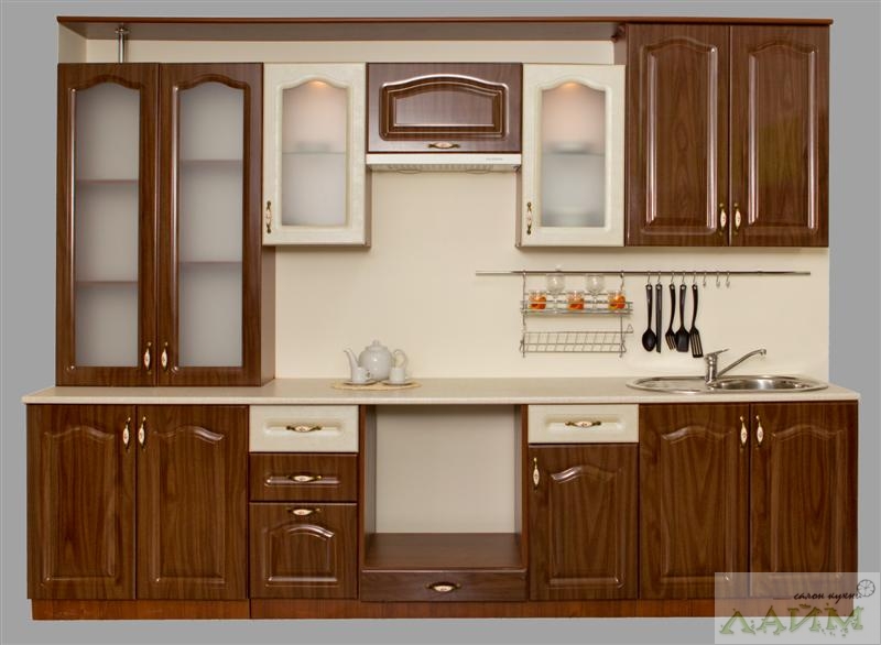 Кухня в классическом стиле. Классика по доступной цене. В каталоге компании имеется более 60 цветов фасадов и более 100 модулей, что позволяет создать кухню с учетом всех пожеланий и особенностей интерьера. Модуль может быть нестандартным по высоте, ширине и глубине. В качестве фасадных материалов используются МДФ в пленке ПВХ, ЛДСП и массив сосны. Рабочая поверхность – постформинг. Комплектация фурнитуры производится по желанию заказчика. Широкий модельный ряд моек из саянского мрамора «Granicom», устойчивых к бытовым повреждениям, загрезнениям и агрессивным средам. Наши дизайнеры выполнят индивидуальный проект и определят стоимость предложенного варианта.