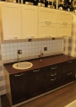Фасад ПВХ – верх – Лен белый, низ – Тиковое дерево
